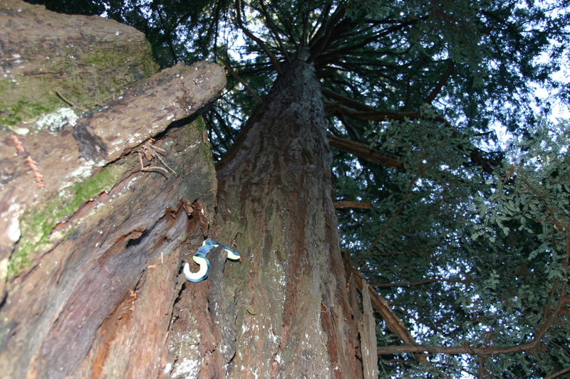 The tallest tree I could find was a rough-barked behemoth known as a Redwood. Resigning myself to a long trip, I began pushing myself up the crevasses in the bark.